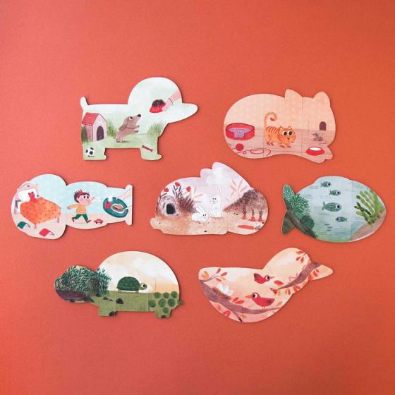 Londji Reversible PuzzlesA cat, a dog, a rabbit, a fish, a bird and a turtle … Let’s play with our pets!7 coluorful reversible puzzles so that the little ones in the house have fun with the animals they love most. Londji I Love My Pets Puzzle SpecificationsIllustration Marta AltésAge from 3 to 103 years oldMaterial Recycled cardboard and paperPackaging Sturdy cardboard boxBox Size 19 x 19 x 8 cm.Weight 565 g.WARNING! Not suitable for children under three years. Small parts. The CE marking guaranties that this Londji Toy meets the European Toy Safety Standard EN71. Our toys have successfully passed the most strict safety tests made by independent testing labs approved by the European Union authorities.