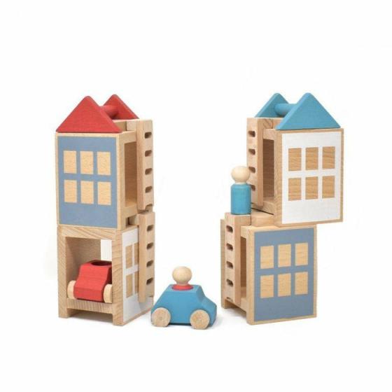 Our Lubu Town Pack Summerville is a great, educational and creative construction toy set for boys and girls. It comes with 4 stackable houses with ladders, 2 toy cars with wooden figures and 2 roofs. This unique toy with a modern design in red and turquoise allows children to create different buildings and enjoy a fun time with their own constructions, the wooden toy cars and the little people. Perfect as addition to your Lubu Town construction sets. The Lubulona range is versatile, creative and combining construction with symbolic play allows children to choose how to play and with what to play. Lubulona’s houses, towns, bridges and trees allow for whole worlds to be built and explored!Lubulona wooden toys are designed in Barcelona and manufactured entirely in Europe out of high quality beechwood and using environmentally friendly cardboard boxes and fabric bags as packaging. All Lubulona toys comply with the European standard for toy safety and are CE marked. They only use paint and glue that is EN 71 certified and therefore totally safe to be used for toys, and are dedicated to local manufacturing.Brand: LubulonaAge Group: older children and adults 6+, preschool 3 to 6 This product is excluded from the same day dispatch. It will be dispatched within 3 business days.