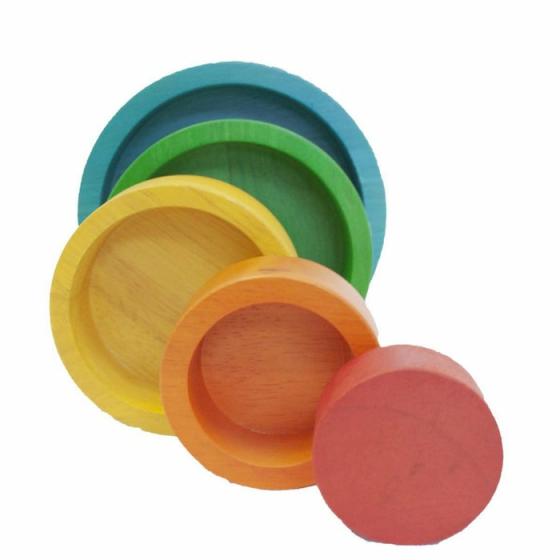 Our Coloured Nesting and Stacking bowls offer multifunctional fun and learning for children. This exciting set provides endless possibilities for play and development. Children can use these bowls for sorting experiences, organizing items by color, size, or type, enhancing their categorization skills. Additionally, the bowls can be stacked in two different ways: one on top of the other to build a tower or nested inside each other, creating a compact and satisfying arrangement.Using these bowls for color matching activities further enriches the play experience. Children can engage in these activities to improve their color recognition, essential for developing literacy and numeracy skills. As they attempt to stack the bowls, they actively promote their cognitive skills, including problem-solving, spatial awareness, and hand-eye coordination.Made from high-quality, durable materials, our Coloured Nesting and Stacking bowls withstand active play while providing a safe experience for young hands. The smooth edges and vibrant colors attract children, encouraging them to explore and learn. Ideal for both independent play and collaborative activities, these bowls support a child’s growth and development in an engaging and interactive way.Whether children use the bowls for imaginative play, sorting, stacking, or color matching, they enjoy a valuable addition to their educational toys. The opportunities with these bowls truly feel endless, fostering creativity, learning, and fun.Measures 15 cm x 15 cm nesting inside one another. Stacked measures appro x 17 cm.Rainbow wooden balls not included.
