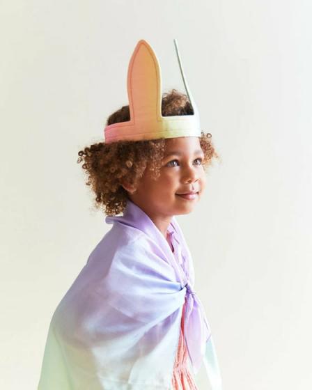 A beautiful headpiece for an aspiring bunny this Easter!Enjoy this gorgeous new Soft Rainbow pattern on 100% pure mulberry silk.Bunny Ears are 21-inches in circumference with an elastic band that stretches to fit most heads comfortably.